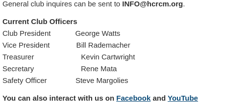 Thanks for your interest in the Hardin County RC Modelers. We would love to hear from you.